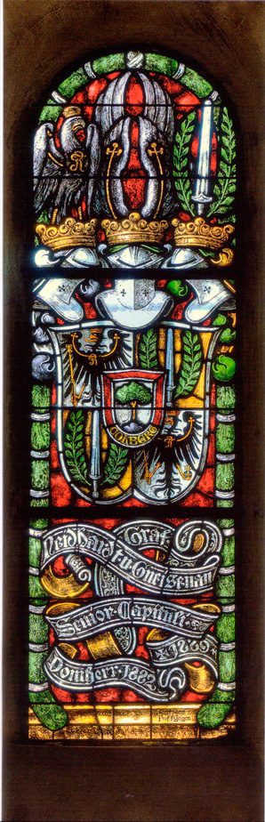 Im umfangreichen Schriftverkehr (ist in den Protokollen der Domherrensitzungen noch einzusehen!) zur Finanzierung und Gestaltung der Wappenfenster finden sich interessante Anmerkungen und Einlassungen der Familienmitglieder zu den zeichnerischen Entwürfen und stilistischen Voraussetzungen.
